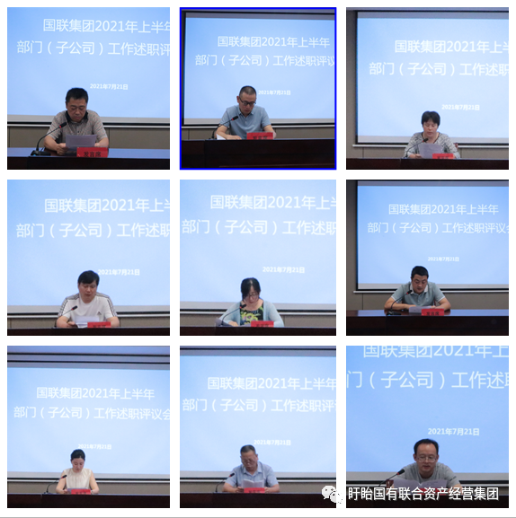 為扎實推進集團年初制定的各項工作目標任務有序開展,7月21日,國聯集團召開2021年上半年度部門(子公司)述職評議會,集團領導班子成員和各部門、子公司負責人參加會議。